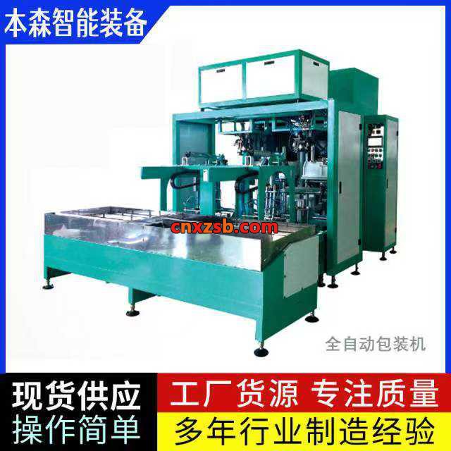 配备自动送袋系统、双气缸皮带夹袋装置和缝包机,实现全程无人干预(工人仅需插袋)。